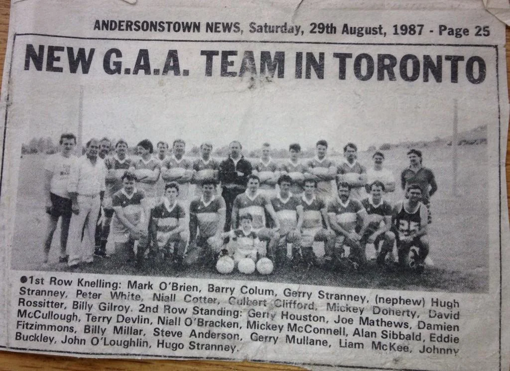 The Toronto Gaels arose from the ashes of the old Garryowen club in 1987, with men such as Billy Millar, Billy Gilroy & Joe Matthews at the forefront. Other former Garryowen men, such as the legendary and sorely missed Tommy White (RIP), and Paddy Callan also played crucial roles in the establishment and growth of the Toronto Gaels over the years.